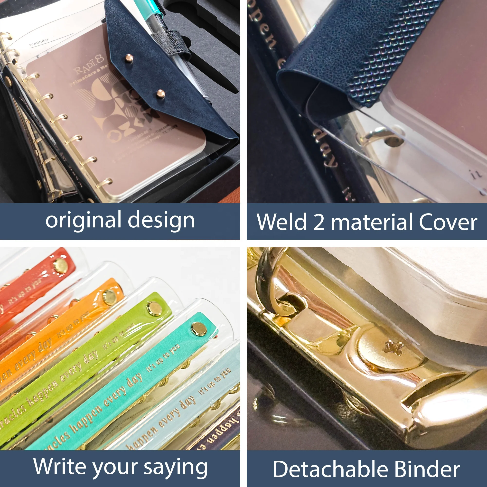 Wholesale Custom A5 Eco-Friendly Notebook PU Leather Cover with Transparent TPU PVC 6-Ring Binder and Refillable 6 Rings